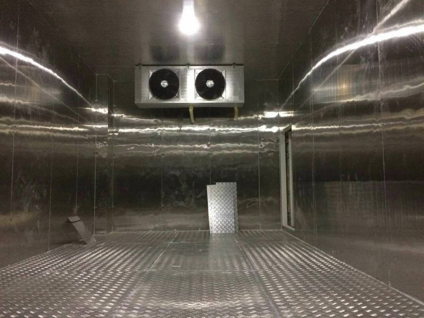 庫(kù)體采用雙面不銹鋼15cm聚氨酯冷庫(kù)板,機(jī)組采用北京比澤爾20匹雙級(jí)水冷機(jī)組,